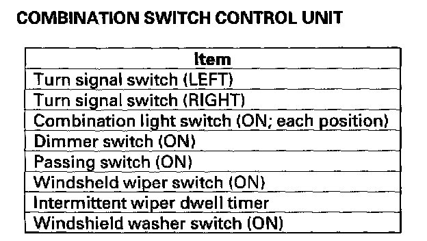 - DTC 4 only (no other DTCs present): Go to the combination switch control unit input test. If all inputs are OK, substitute a known-good wiper/washer switch and then a MICU, one at a time, and then check for DTCs. If a DTC recurs after a substitution, replace that unit.