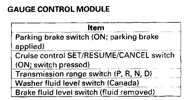 - DTC 5 only (no other DTCs present): Go to the gauge control module input test. If all inputs are OK, substitute a known-good gauge control module and then a MICU, one at a time, and then check for DTCs. If a DTC recurs after a substitution, replace that unit.