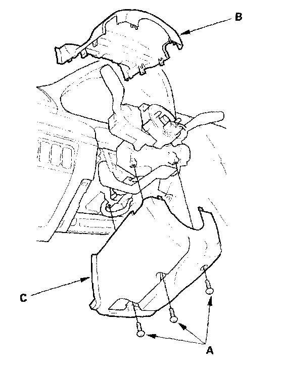 7. Remove the column cover screws (A) then remove the column covers (B, C).
