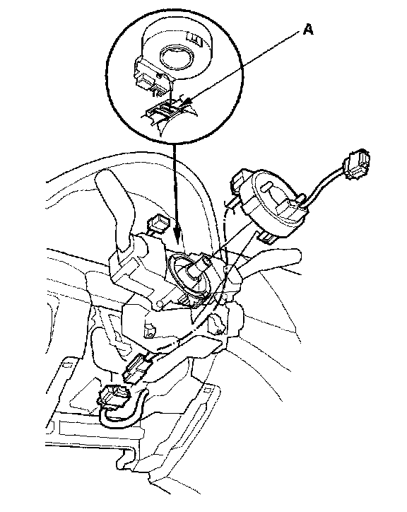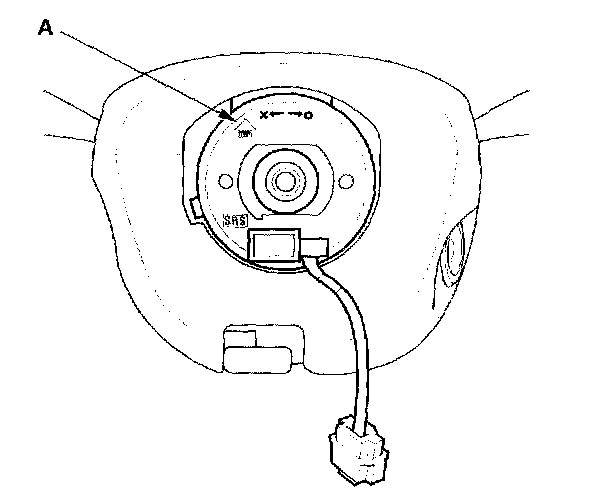 6. If necessary, center the cable reel. (New replacement cable reels come centered.) Do this by first rotating the cable reel clockwise until it stops. Then rotate it counterclockwise (about 3 turns) until the arrow mark (A) on the cable reel label points straight up.