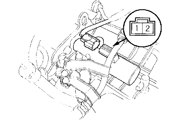 9. Connect the battery positive terminal to the No. 1 terminal of the A/T clutch pressure control solenoid valve A connector, and connect the battery negative terminal to the No. 2 terminal. A clicking sound should be heard.